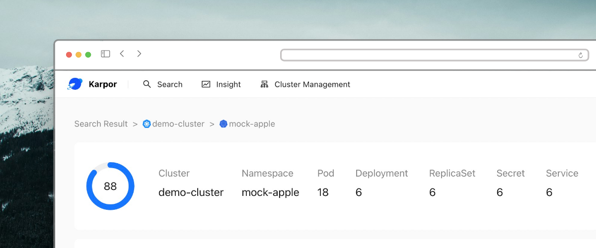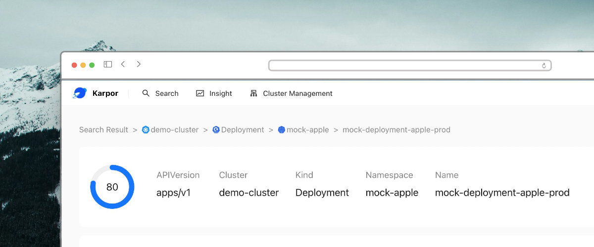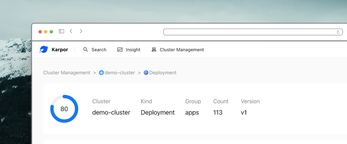 - Resource Insight Page, the summary card shows the current resource's name, GVK information, affiliated cluster, and namespace.