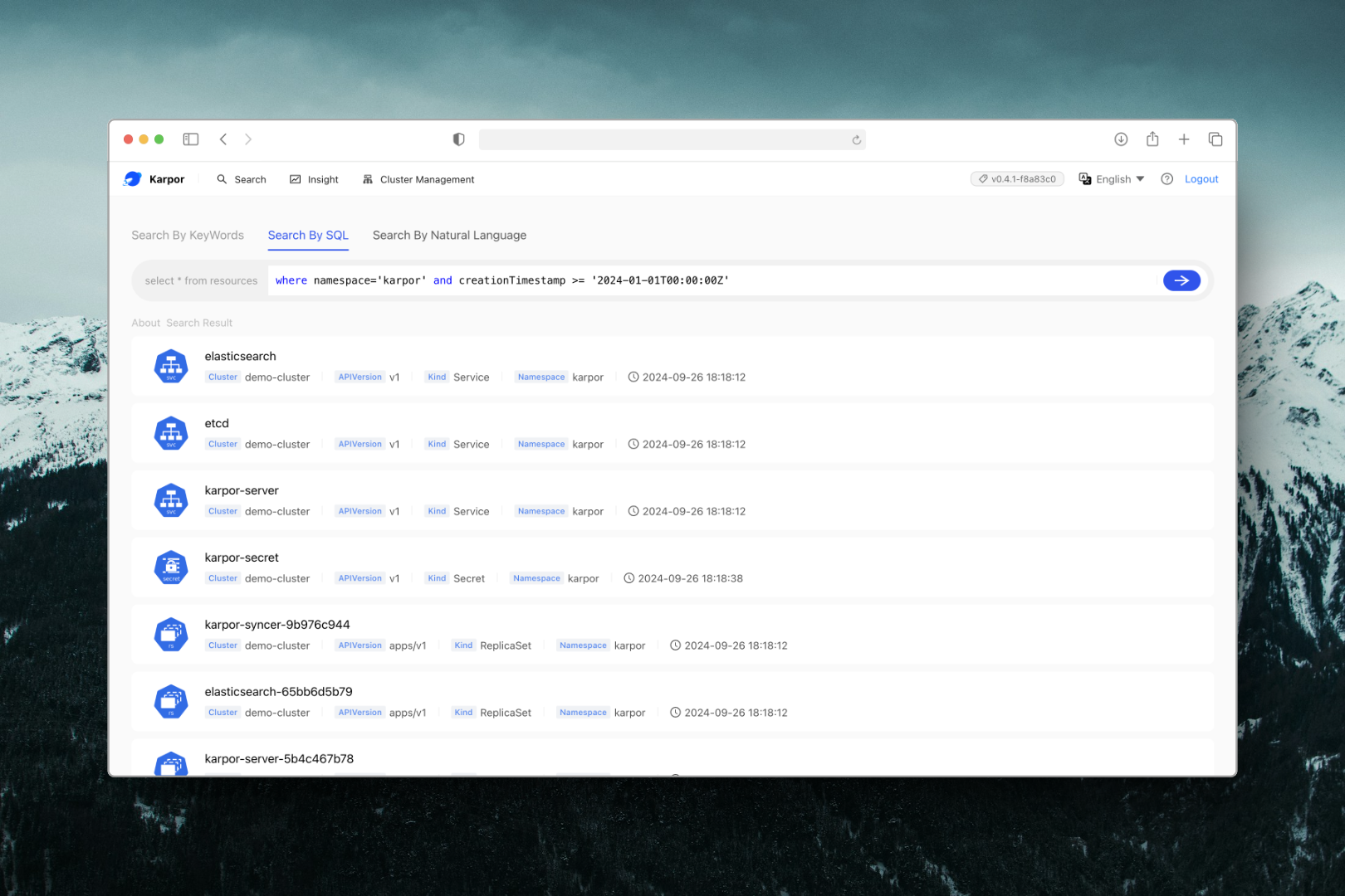 Karpor offers a nifty SQL query feature that allows you to search and filter all Kubernetes resources within managed clusters using familiar SQL syntax and provides targeted optimizations and enhancements for multi-cluster resource searches.