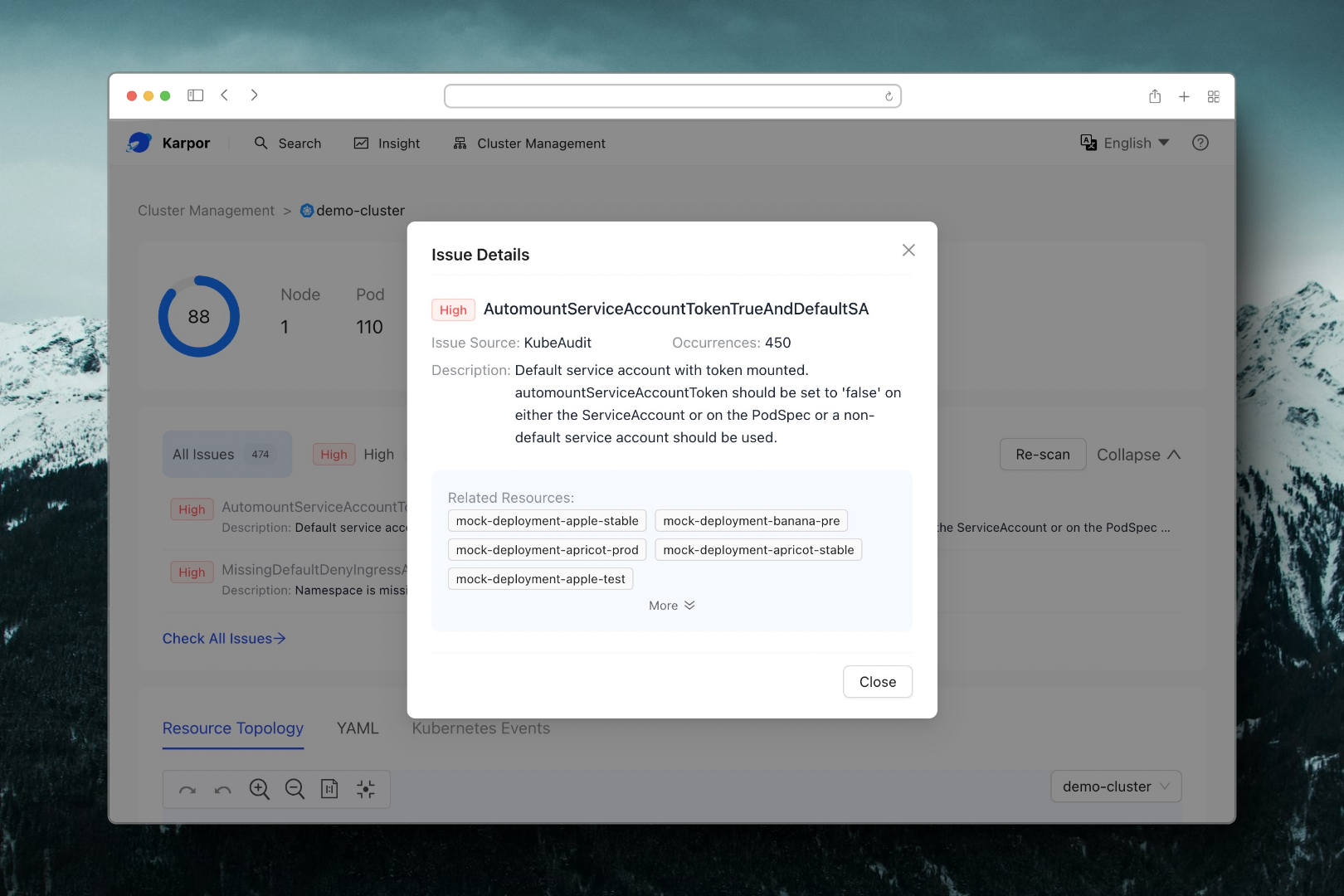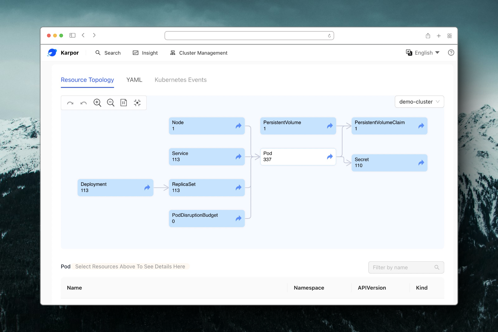 祝贺你!🎉 你已成功安装 Karpor。现在你可以开始使用 Karpor 探索和洞察多集群中的资源。