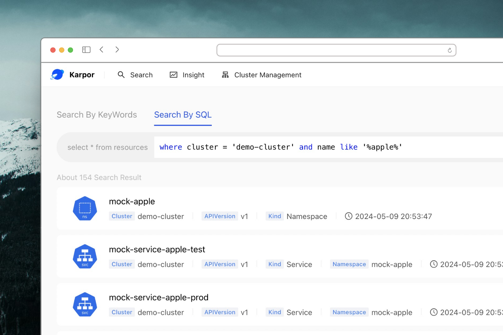 Karpor 提供了一个强大的搜索功能,允许你快速跨集群查找资源。要使用此功能:
